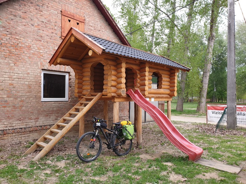 Szarvas. Itt álljunk meg egy szóra. Nekem ez volt az a fordulópont, ahol valamiért azt éreztem, hogy eljutottam valahová. Ezt még azóta sem tudtam megfogalmazni magamban. Nem a fizikai teljesítmény miatt, azzal semmi gond nem volt. Az első két homokos nap után már tudtam, hogy a világból is kitekerek, ha nincs dagonya, nagy sár. Spoiler: nem volt! 🙂 Szóval az, hogy egy nagy városba értem el, vagy az, hogy ezt a helyet igen jól ismertem, nem tudom. Jó érzés volt, ez volt az egyetlen komoly mérföldkő az egész út alatt, amihez elérni – talán ez a jó jelző – felemelő érzés volt. Ez olyan mentális, belső dolog. Valójában semmi nem változott, de mondjuk nagyképűen hangozhat így utólag: innentől akármeddig tudtam volna folytatni az utat. Belerázódtam, már minden rutinosan ment, nem kellett semmit számolgatni, éreztem az egészet. Persze ezután is próbáltam gondosan odafigyelni a 2-3 hónap alatt megtervezett útvonal minden részletére. Nem az motoszkált bennem, hogy meglesz az egész táv, mert azt egyszer sem volt kérdés az elindulás előtti 1 héttől számítva. Ez az egész inkább csak utólag tudatosodott, ott csak a jó érzés volt meg bennem.