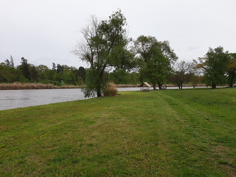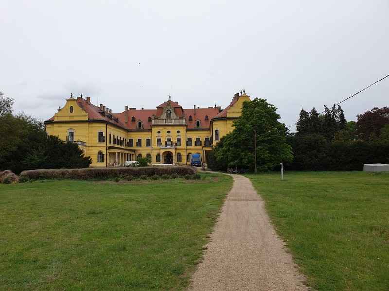 Ha jól emlékszem, valahol itt kezdett el cseperegni, vagy Nagymágocs után. Inkább utána, mivel a Károlyi-kastély előtt én még átvágtam egy eléggé benőtt szakaszon, aminek az utolsó 150-200 méter már egész sűrű volt, akác csemetékkel tarkítva. Megúsztam. Telefonáltam, hogy inkább kerüljenek az aszfalton (nehogy defekt legyen belőle). Így a kastély / idősotthon portájánál értek be Nóriék, pecsételtünk és megbeszéltük, hogy én kicsit tempósabban fogok menni Szarvasig, ugyanis a kollégiumi szállásunkat épp ekkor hívtam fel. A hölgy elmondta, hogy nem 6-ig, hanem csak 5-ig van ott, mert korábban jött be (reggel 5-re) egy másik túrázó miatt. Így a kulcsokat én fogom átvenni, reggel pedig fizetünk. Azért még tekertem egyet a tóparton.