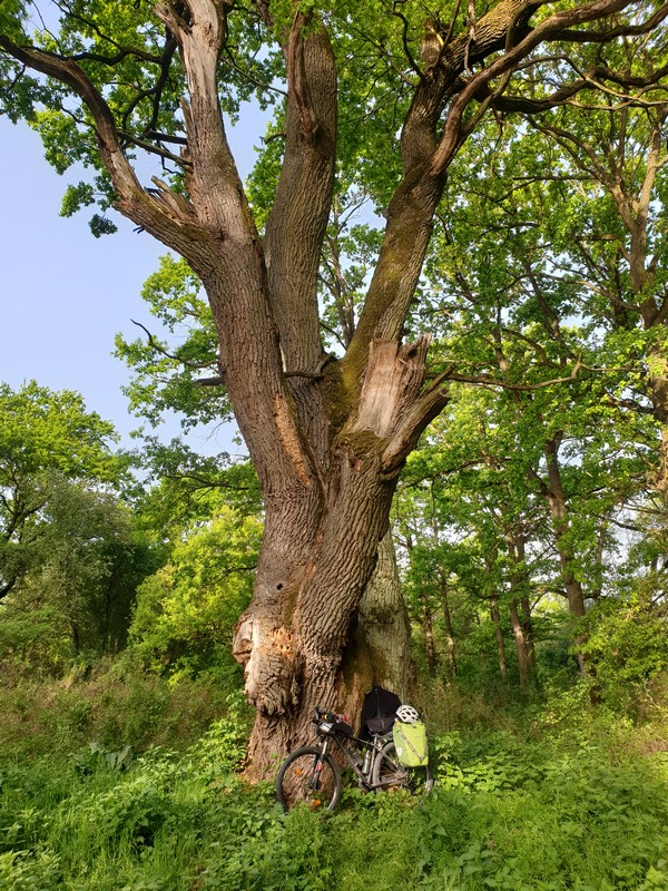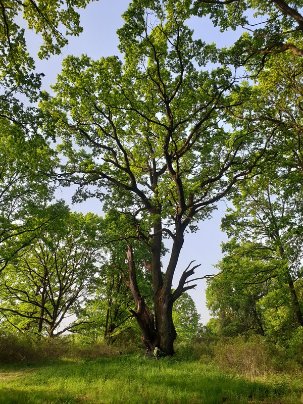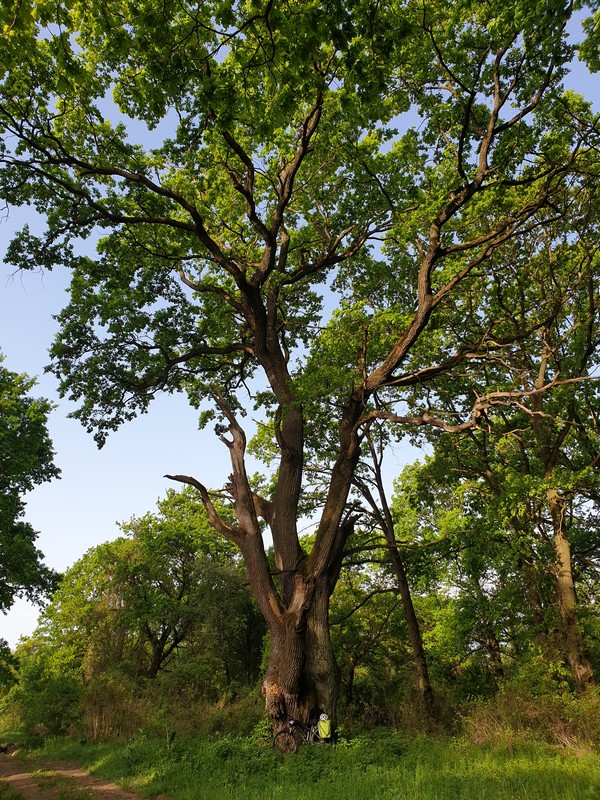 Első állomásom a közeli 300 éves, óriási kocsányos tölgyfa volt. A reggeli fények pont a nyitott, keleti részről világították meg, így még pompásabb látványt nyújtott. A láda is gyorsan előkerült egy másik nagy fánál.