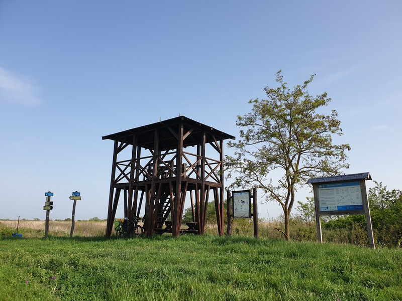 Biharugráig egy hosszú, egyenes szakasz következett a védett területen. Egy útba eső kilátón picit megpihentem és ettem egy csokit. Végtelen nyugalom, csend, csak a madarakat lehetett hallani. A nagy felső szinten elnyúltam és élveztem a napsütést.