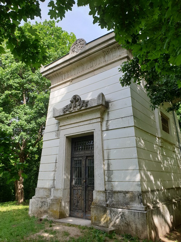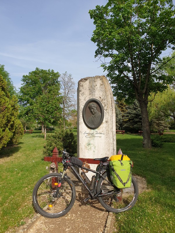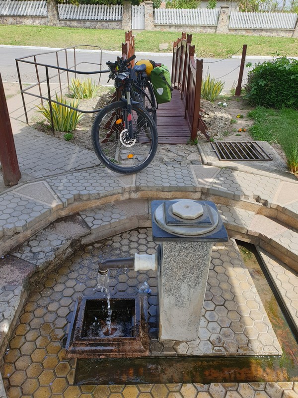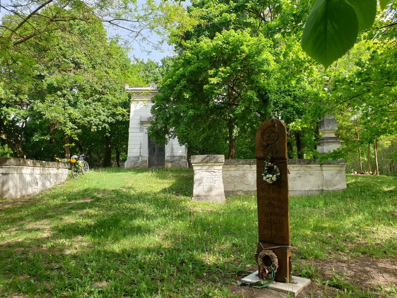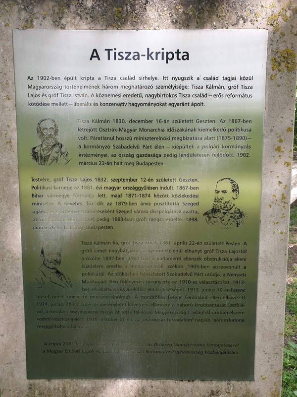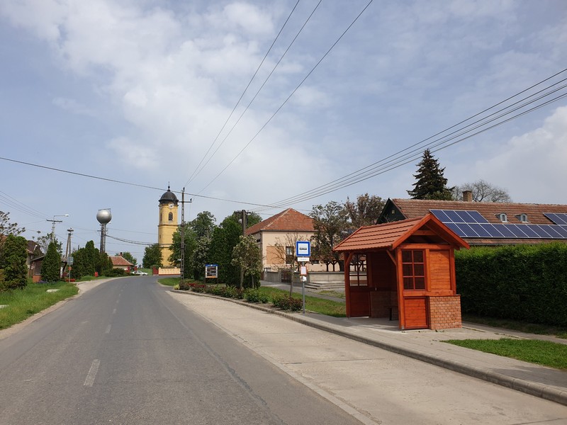 A településből nem sokat láttam, épp a határát érinti az útvonal. A temetőn keresztül vezet be, ahol a Tisza-kriptát lehet kívülről megtekinteni. Innen a pecsét felé kis kitérőt tettem. A temetőnél van közút, folyt belőle a víz, egyik kulacsomat picit utántöltöttem.
