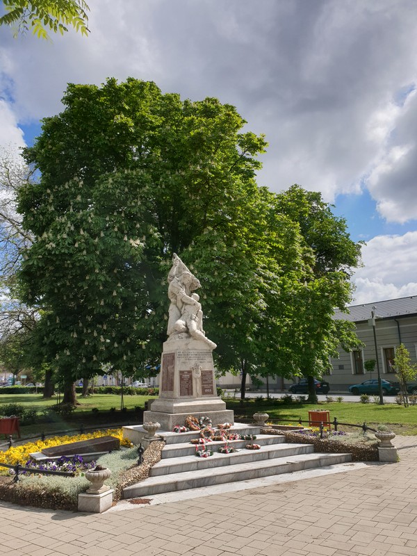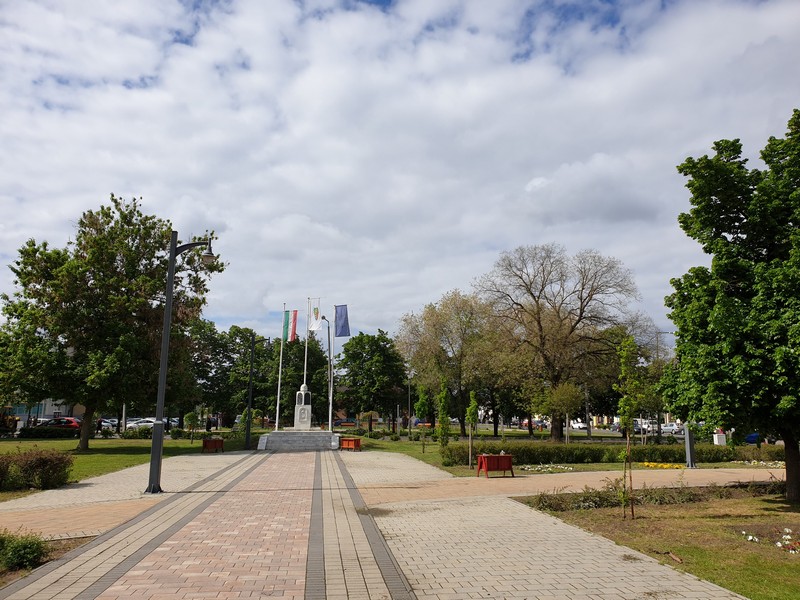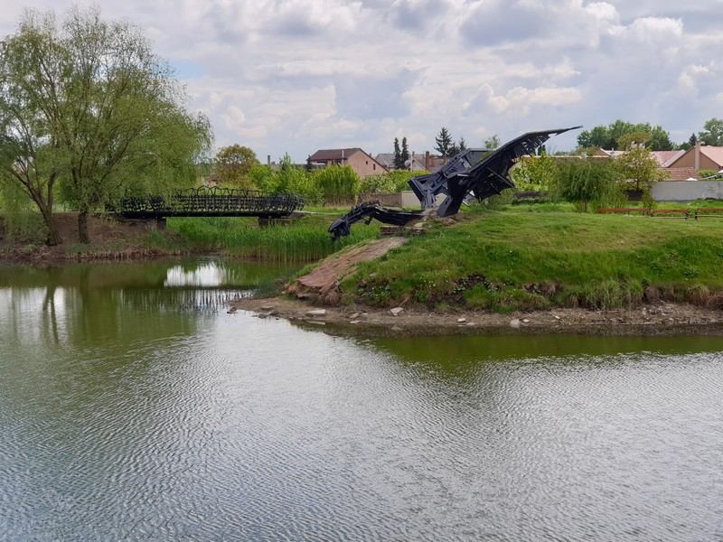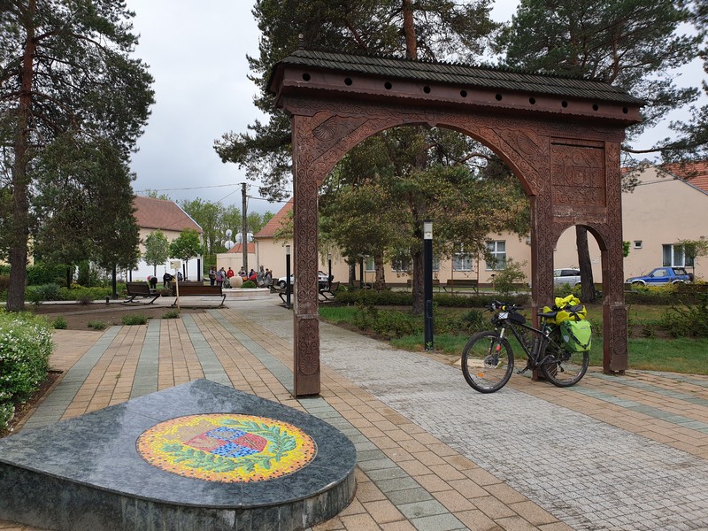 Hamar elhagytam az aszfaltot és Nyíracsád felé nedves homokon kanyarogtam. Jól járható volt az összes út, a szürke felhők alatt csak pár nagyobb tócsát kellett kikerülnöm. Gyorsan beértem a központba, ahol a pecsétet a művelődési ház egyik irodájában őrzik. Amikor terveztem, akkor még azt is megnéztem, hogy 7-kor már ott vannak hétfőn. Nos, én picit később értem oda. Megnéztem a kis teret az érdekes szobrokkal, majd a rendkívül kedves hölgy segítségével bejutottam a pecséthez. A falat elmondása szerint a gyerekek nyomkodják össze, hiába szólnak rájuk. Pedig ez egy iroda, nem a vasút váróterme.