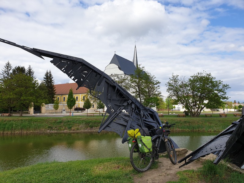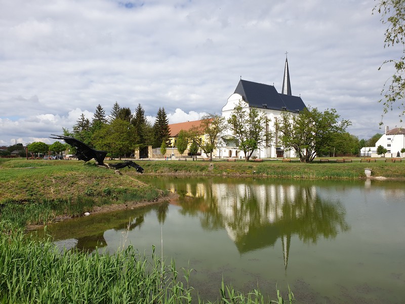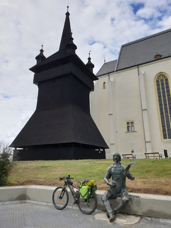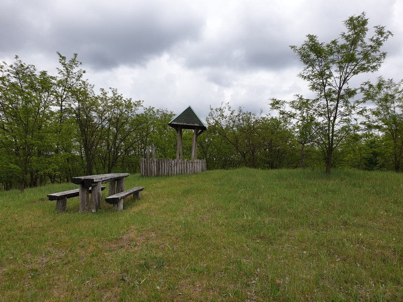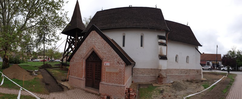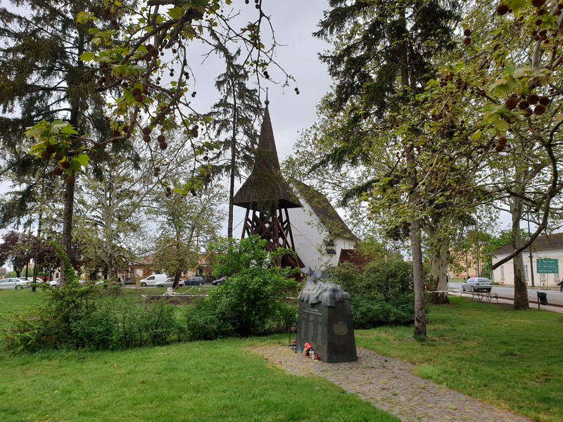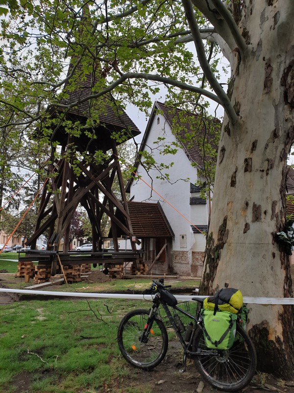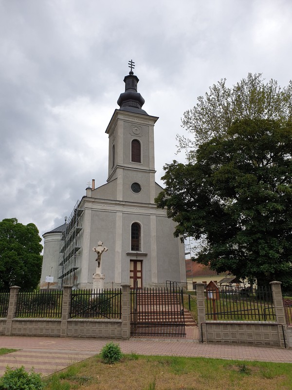 Innen a templomhoz tekertem. Felújítják a XIII. századi templomot és az előtte lévő, 1779-ben épült harangláb is meg van emelve. Gondolom új alapot kap. Körbe volt kerítve mindkettő, körbejártam a kis téren, készítettem pár fotót. Nagyon szép, még ebben az állapotban is. Gondoltam, ezt sajnos közelebbről nem tudom megnézni. Már majdnem indultam, amikor megláttam az út másik oldalán egy nyitva lévő cukrászdát. Fagyira ugyan nem vágytam, de egy jó kávét kértem. Majd, amikor bementem, láttam, hogy egész jó sütit is kínálnak. Így kiegészült a reggeli kávézás egy somlói kockával és mangós üdítővel. 🙂