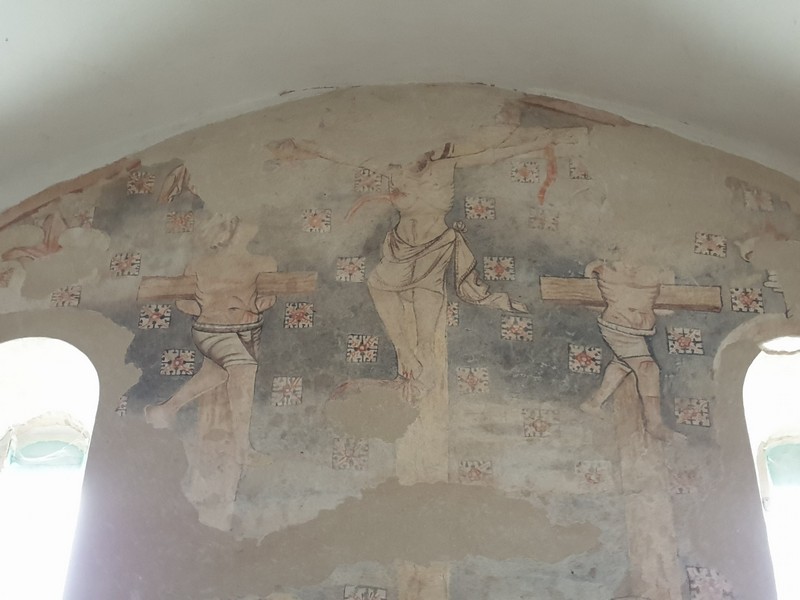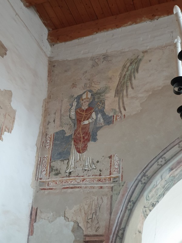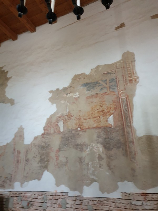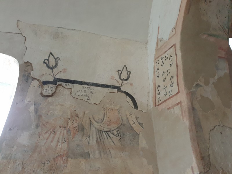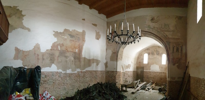 A kedves tulajdonos rövid beszélgetésünk végén egyszerű kérdést tett fel: kérem a kulcsot is? Igen, a templomét. Hát persze! Így tudtam megnézni a freskókat is. Ritka látvány a betonkeverő egy templomban. A biciklimre addig ők vigyáztak. Szuper jól kezdődött ez a nap is!
