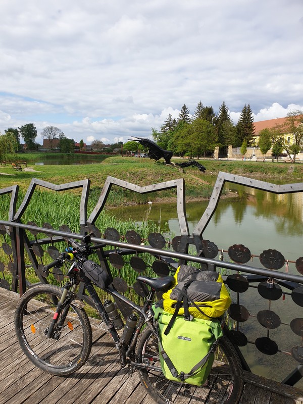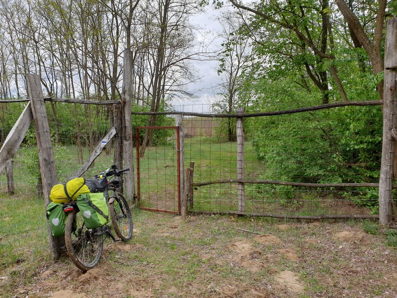 Nyírlugosig jól haladtam, csak egy megállót tartottam. Egy ponton kerítés állta utamat. A kaput lánccal és lakattal zárták le. Erről is kaptam előzetes infót, túratársam monda, hogy ő a hátizsákjával átfért, mivel a láncot ki lehet tekerni. Az így nyíló résen a kormányom átfért, de a csomagokat már nem tudtam átmanőverezni, így a nyílásban rekedt bicikliről le kellett szednem minden csomagot, így már könnyen a túloldalra varázsoltam mindent. A láncot visszatekertem a kapu tetejére, s a következő településig meg sem álltam.