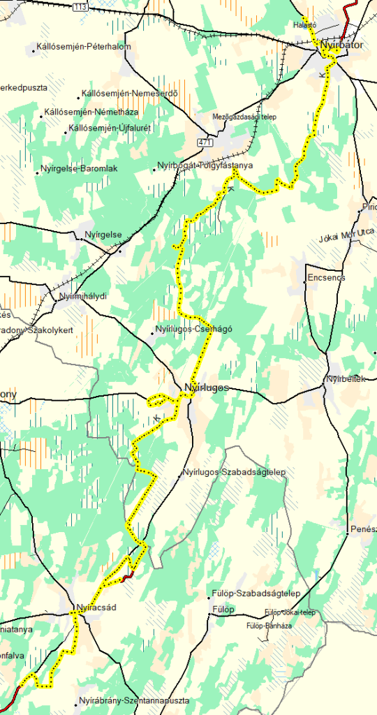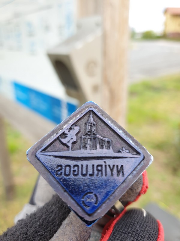 Ó, a GPS-ről nem is írtam. Tegnap beázott, aminek semmi nyoma nem volt aznap. Este kikapcsoltam, reggel bekapcsoltam. Működött. Épp csak indulás után tapasztaltam, hogy a kinti, hűvösebb időben hirtelen pára jelent meg a kijelző belső oldalán. Na szép! A gombokra nem reagált, de mutatta a kezdő képernyőn a műholdak állását (bekapcsoláskor ez a képernyő jelenik meg). Abban csak bízni tudtam, hogy rögzíti a track-et. Azért a telefonomon is beindítottam egy tracking alkalmazást, biztos, ami biztos. Szóval a kéktúra útvonal követése nem volt gond, hiszen a telefonomon is volt offline túratérkép (g:hu és a mapy.cz OSM alapon). Csak a pecsétek pontos helye nem volt fent. Volt egy listám, meg egy áttekintő online térképem minden POI-val, letérővel, amit beterveztem. Ám azon a térképen nem látszott az aktuális pozícióm (umap.operstreetmap.fr szerveren). Így a nyírlugosi pecsétet kicsit keresnem kellett. Két körforgalom volt, az elsőnél nem volt, így a következő után a TTT leírások alapján végül megtaláltam. Na szép. Ha behal a GPS-em, akkor jó lesz a hátralévő út.