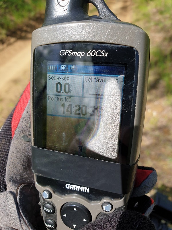 Istvántanya után még egy nyíltabb területen vezetett át a kék, a nap is kisütött, így én is kisütöttem valamit a GPS szárítása érdekében. Levettem a hátsó fedelet az akkukat pedig szigetelőszalaggal rögzítettem. Így menet közben a szél picit átjárhatta a GPS-t, fentről pedig kapta a napsütést. Napközben egy rövid pillanatra engedte a lapozást, így most a párától és fekete szig.szallagtól félig kitakart képernyőn láttam a térképet. Bár a nap hátralévő részében már nem volt rá szükségem.
