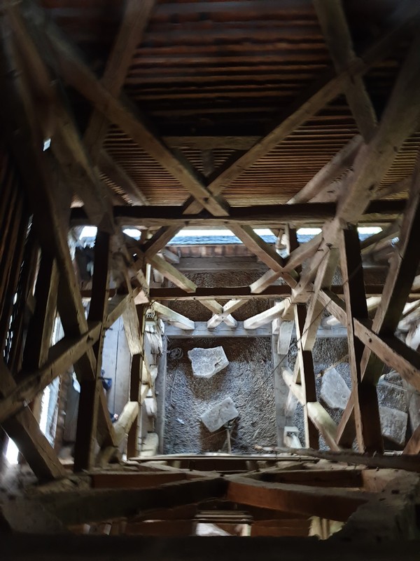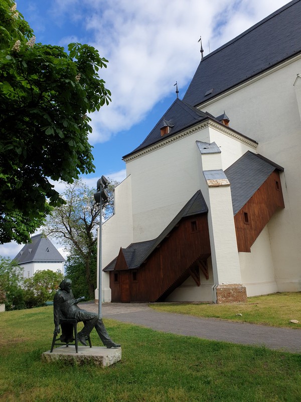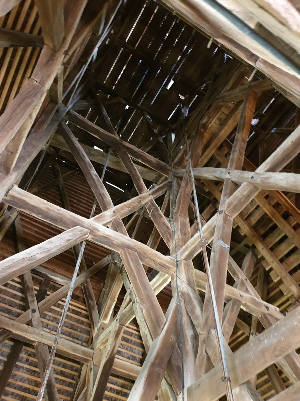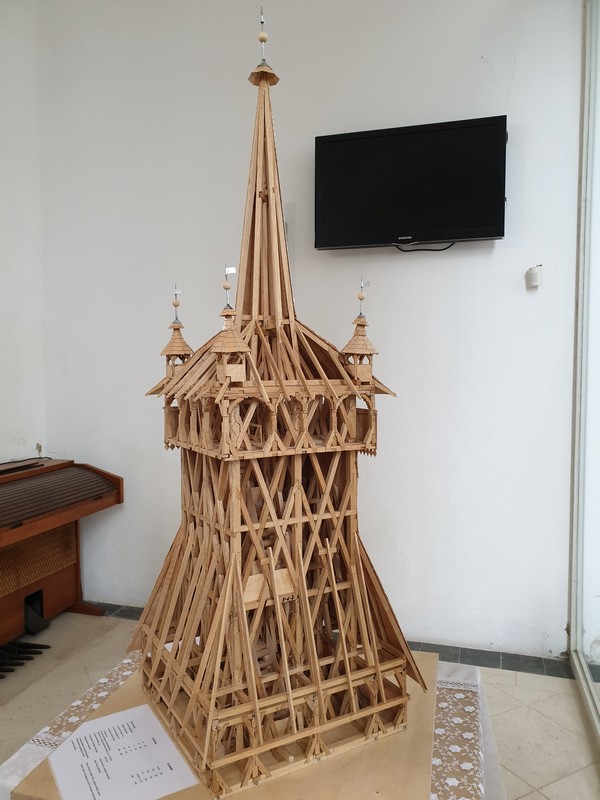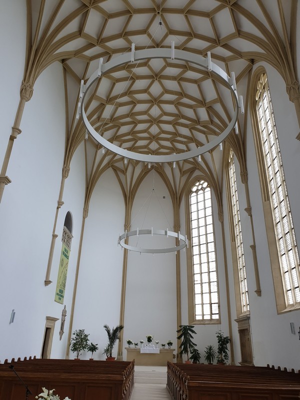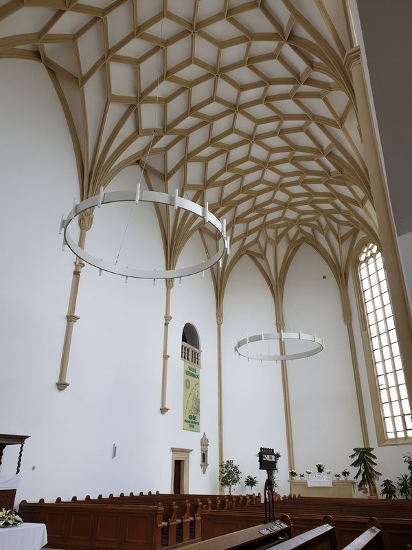 Mikor leértem, akkor jött két ember, épp egy csoportot vártak. Így a templomot is meg tudtam nézni, privát idegenvezetéssel. Felmentem a tetőtérbe is, ahol a mennyezetet és az impozáns tetőszerkezetet is megcsodálhattam. A biciklimre addig vigyáztak lent. Szép volt és nagyon örültem, hogy mindent megnézhettem. A végén megérkezett a csoport, de a bringámra vigyázó úrral még kint beszélgettünk egy kicsit.
