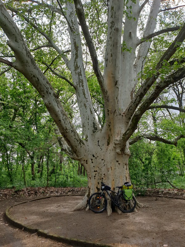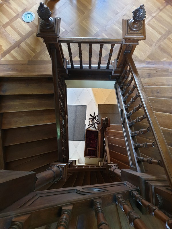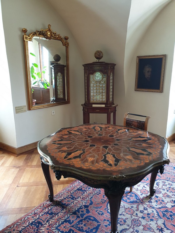 Innen a kastélyhoz mentem. Már jártam itt, de nem lehetett kihagyni. Pont a 10-es nyitásra értem oda. Én ragaszkodtam a cipővédőhöz, mivel a hölgy nem tudta, hogy az SPD cipő alján van egy fém patent is. A lakkozott padlónak nem túl egészséges az SPD kezelés. A múzeum után a kertben is körbejártam. A platán óriási és csodálatos!