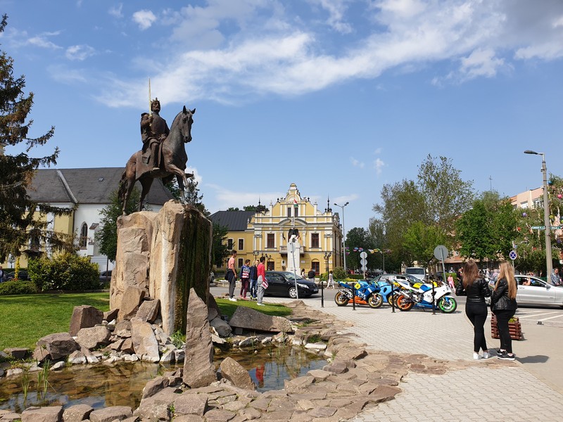 Kisvárdán az első célpontom a vasútállomás volt, ami kis kerülő volt a felüljáró után, de pecsét kérdésben biztosra mentem. Persze megvolt a másik is, de erről később. Áttekertem a városon, a kék bevitt a belvárosba, ahol – talán sétáló utcán – óriási buli volt. Színpad, mindenki evett, ivott, a fagyisoknál kilométeres sorok kígyóztak. Fiatal lányok bámulták a bazi nagy motorral érkezett vagányokat, szóval zajlott az élet ezerrel. Ezt a szakaszt gyorsan magam mögött hagytam, a Rétközi Múzeum is csak kívülről tudtam megnézni. A csend nekem jobban tetszett.