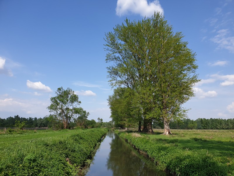 Ez egy könnyű napnak ígérkezett: jó időt, napsütést ígértek mára, jó útvonal és látnivalók vártak. Hajnalban még esett, de ez csak a városból kivezető aszfalton volt érzékelhető. Az ünnep miatt üres utakon tekertem reggelim után az ipari park felé. Tegnap idáig megtettem a kék Nyírbátoron belüli szakaszát, így egy centi sem maradt ki.