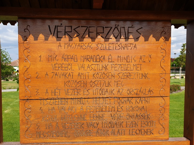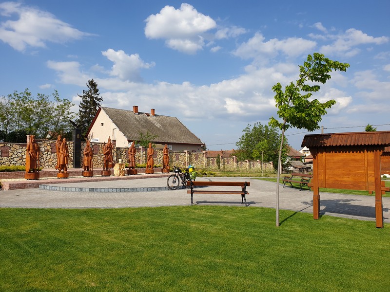 Előtte még megnéztem a kis település látnivalóit. Takaros kis parkot alakítottak ki a hét vezér fából kifaragott figurájával. A fű műgonddal volt lenyírva. Frissnek hatott minden.