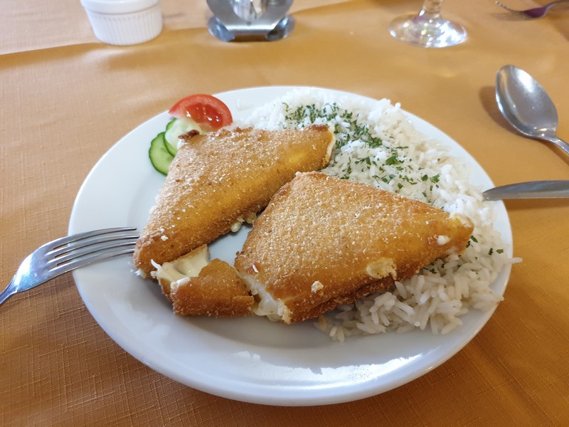 Enni a Camping Sörözőben kértem. A babgulyásuk finom és tartalmas volt. Ezt egy helyi lakos ajánlása alapján választottam, nem bántam meg. Két sörrel később már tekertem is a TESCO mellett ki a városból.