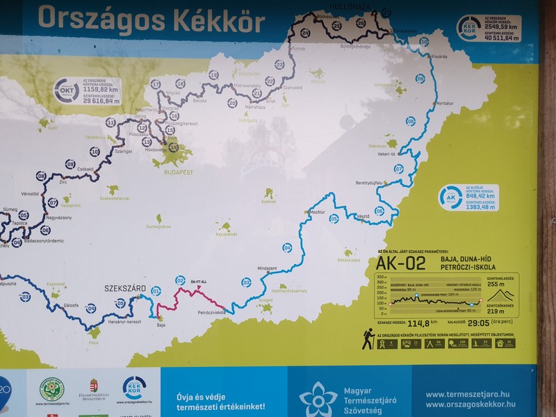 Az út első felén többen is csatlakoztak hozzám hosszabb-rövidebb időre, a táv második felét egyedül tettem meg. Több hónapos tervezgetés után alakítottam ki a napi szakaszokat, figyelembe véve az adott részek járhatóságát. Törekedtem az aktuális, kijelölt útvonalat követni. Ezt csak látnivalók, kitérők során hagytam el. Illetve volt az elején egy benézett forduló (a Gemenci-erdőben).